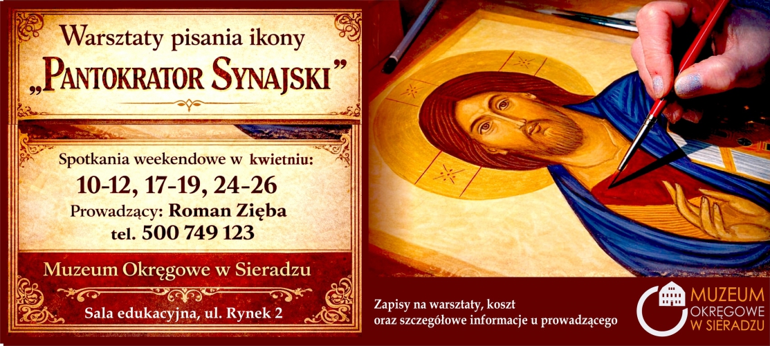 Muzeum Okręgowe w Sieradzu zaprasza w kwietniowe weekendy na warsztaty pisania ikon. Podczas tych niezwykłych warsztatów, pod kierownictwem Romana Zięby, będzie można napisać własną ikonę Chrystusa Synajskiego na desce, tradycyjną techniką tempery jajowej.