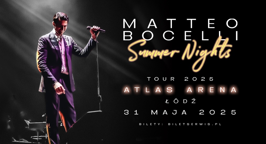 Sprzedaż biletów na koncert Matteo Bocelliego rozpoczyna się 8 XI 2024 r. o godz. 10 na platformie www.biletserwis.pl.