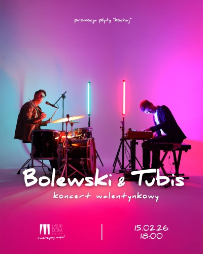 Bolewski & Tubis to wyjątkowy i oryginalny w skali kraju duet, Radosław Bolewski – wokal, perkusja oraz Maciej Tubis – fortepian i syntezator basowy. Ich muzyka określana jest jako wysmakowany balans między jazzem a muzyką pop w odważnej improwizowanej odsłonie. Bolewski & Tubis łączą alternatywny pop z żywą improwizacją, tworząc muzykę, która pulsuje emocjami i przestrzenią.„KOCHAJ…wszystko inne może poczekać”, to opowieść o tym co zostaje kiedy wszystko inne się zmienia. O chwilach, które warto zatrzymać, o ludziach, którzy są obok nas.