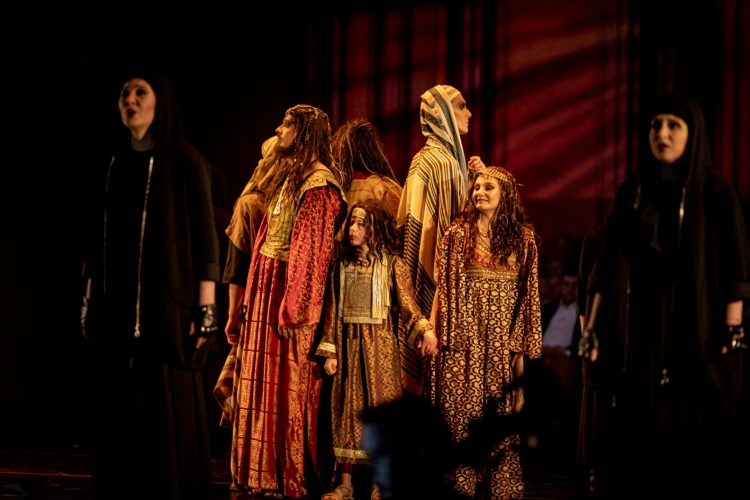 Tematyka biblijna pozwala tworzyć paralele ze współczesnością i mówić nie wprost o tym, co nas otacza. Z życia bohaterskiego króla Dawida, pogromcy Goliata, wybrano haniebny epizod: król uwiódł Batszebę, żonę swego żołnierza, a potem doprowadził do jego śmierci na polu bitwy. Prowokuje to wiele pytań o etyczne wybory i możliwość jednoznacznej oceny człowieka – coś, z czym mamy problem do dziś. Wykorzystała to reżyserka Beata Redo-Dobber, pomost między czasami biblijnymi a najnowszymi budując dzięki wyświetlanym nad sceną projekcjom multimedialnym. Zdjęcia z obozów koncentracyjnych, wizerunki dzieci umierających z głodu, słynna fotografia dziewczynki poparzonej napalmem z okresu wojny w Wietnamie dobitnie pokazują, że współczesność nie przyniosła postępu moralnego. Nie pozostawiają wątpliwości, że ludzkie cierpienie nie skończyło się w czasach biblijnych, tak samo jak płacz dzieci, ból rodziców i niezawiniona śmierć (którą Bóg zesłał na małego synka Dawida i Batszeby, karząc go za grzechy matki i ojca). Nieopisane w Starym Testamencie, a pokazane na scenie pojednanie wszystkich bohaterów wzbudza jednak nadzieję i dzięki temu czyni cierpienie znośnym. Piękny to przekaz, lecz sposób jego prezentacji można uznać chwilami za zbyt dosłowny; jednoznaczność niektórych obrazów wykorzystanych w projekcjach nie pozostawia widzowi pola do interpretacji.