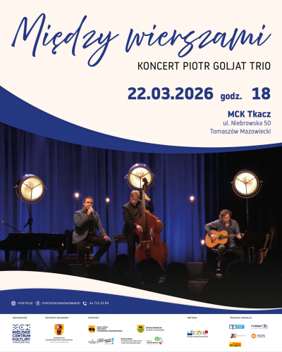 „Między wierszami…” to najnowszy, autorski projekt Piotra Goljata, w którym muzyka spotyka się z poezją, a słowo zyskuje nową, dźwiękową przestrzeń. Program koncertu tworzą autorskie kompozycje do wierszy wybitnych polskich poetów, m.in. Adama Asnyka, Bolesława Leśmiana czy Juliana Tuwima. Artysta wystąpi w Miejskim Centrum Kultury Tkacz w Tomaszowie Mazowieckim 22 III o godzinie. 18.00.