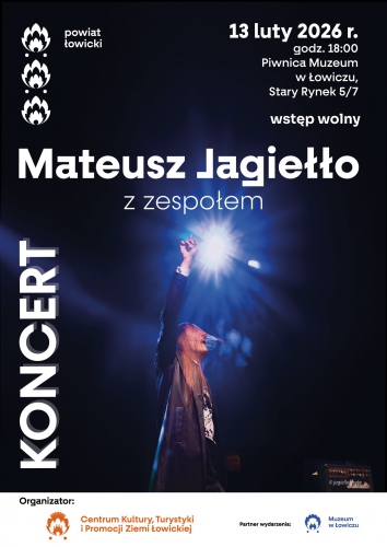 Centrum Kultury Turystyki i Promocji Ziemi Łowickiej zaprasza na koncert, pochodzącego z Łowicza, Mateusza Jagiełło, jednego z finalistów 16. edycji programu The Voice of Poland. Utalentowany łowiczanin wystąpi 13 lutego o godz. 13.00 w Piwnicy Muzeum w Łowiczu.