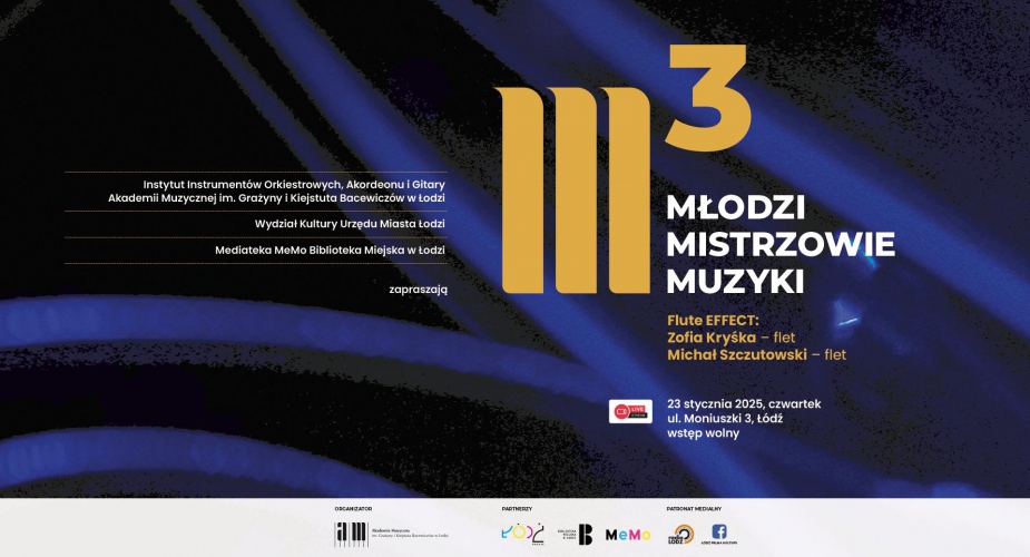 Pod hasłem M3, czyli „Młodzi mistrzowie muzyki” kryje się cykl koncertów studentów Akademii Muzycznej w Łodzi, które odbędą się w zrewitalizowanym podwórku Wydziału Kultury Urzędu Miasta Łodzi. Sala mieści się przy ul. Moniuszki 3, stąd nazwa miejsca Galeria M3.
