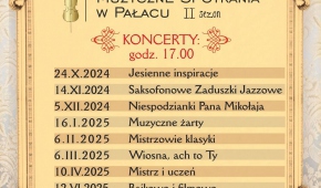 Szczegółowy harmonogram drugiego sezonu muzycznych spotkań w Pałacu Saskim na plakacie w załączniku.