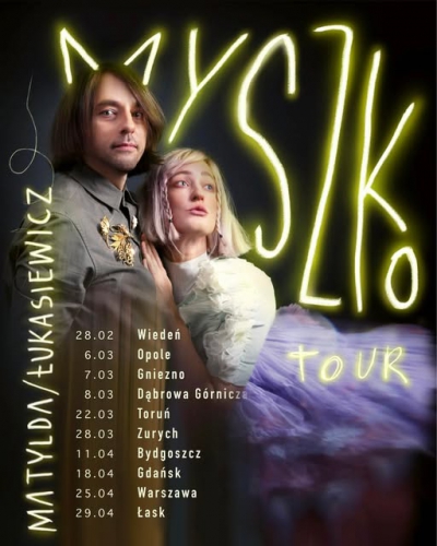 Duet Matylda/Łukasiewicz wystąpi w Łaskim Domu Kultury w ramach trasy „Myszko Tour". Na koncercie będzie można usłyszeć nowy singiel „Myszka” i wszystkie najlepsze utwory tego duetu. Matylda/Łukasiewicz zaśpiewają w Łasku 29 IV. Początek wydarzenia o godzinie 19.00. Bilety w cenie 104,35 są już w sprzedaży.