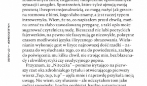 Najwięcej ścieżek dźwiękowych to delikatne, oldschoolowe produkcje ze strony Hanto Beatmaker. Na przykład w „Kurorcie” czy „Jest cud”. Pierwszy to złożenie dwóch wierszy z tomu „Przecieki z góry”, drugi to nowy tekst, napisany specjalnie do zaśpiewania. W pierwszym słyszymy Kleszcza-pesymistę, bacznie obserwującego nasze zabawy „z zabawkowym wiaderkiem, ze szmatem czasu”, w drugim nowego Stachurę albo inny Kwiat Jabłoni w zachwycie nad całym światem („Zachwyt” to zresztą tytuł jednej z piosenek). Muzyka dodaje tym tekstom czegoś, co zbliża do siebie oba bieguny. Z przyjemnością się tego słucha, zwłaszcza że Kleszcz – co rzadkie u poetów – dobrze czyta swoje wiersze. Nawet bez podkładu muzycznego.