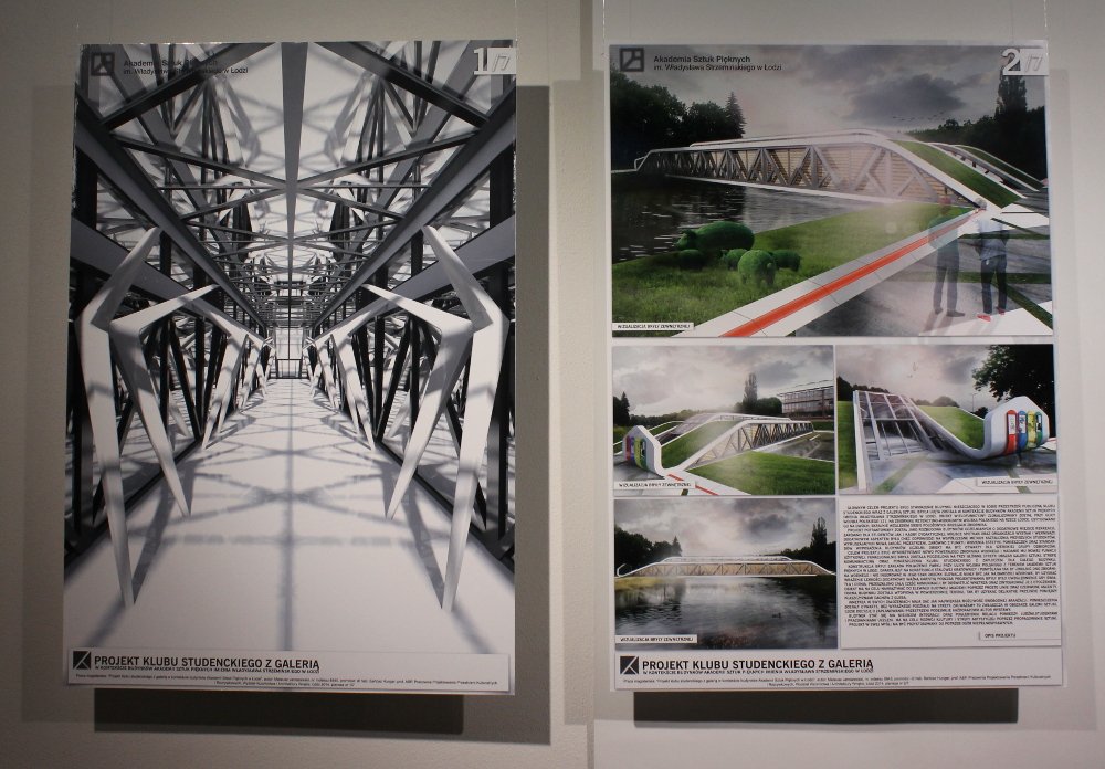 Jeśli chodzi o projektantów, spodobały mi się np. plakaty Katarzyny Olejniczak-Drobner, dotyczące potencjalnych wystaw przedstawicieli radzieckiej awangardy, gdzie twarze artystów są nałożone na ich dzieła. Albo nadruki na tkaninach autorstwa Marceli Golis (w postaci kolorowych zwierząt czy… wnętrzności). Małgorzata Klamra urzeka po pierwsze kolekcją damskich asymetrycznych ubiorów unikatowych w naturalnych brązach i beżach, po drugie obiektami w formie wstęg z powyginanej przezroczystej pleksi. Paweł Krzyszkowski wykonał futurystyczne słuchawki bezprzewodowe inspirowane filmem „Tron”, które wyglądają jak wyszukana biżuteria. Kaja Pęczak swoimi plakatami uczula na to, że należy chronić łódzką architekturę. Łódzkość jest też tematem jej dwóch niezwykłych książek – subiektywnych fotograficznych przewodników (jeden można oglądać przez szkło powiększające, drugi jest zamknięty w „klatce”, której ażur powtarza układ łódzkich ulic). Marta Gajda zaproponowała interesujący projekt adaptacji budynku po kinie Gdynia w Łodzi na hostel. Monika Psut – finezyjny łącznik między budynkami łódzkiej ASP, Mateusz Jaroszewski – projekt klubu z galerią w formie „mostu” nad zbiornikiem retencyjnym koło ASP. Monika Sowińska zaprojektowała wygląd mieszkania – eleganckie wnętrze wypełnia kontrast czerni i bieli z akcentami seledynu. Ciekawe są projekty magazynów autorstwa Małgorzaty Tumiłowicz, Marty Olczak i Kai Kai – nowoczesne, zachęcające do oglądania (nawet gdy trudno się w nich połapać – jak w przypadku pracy Olczak). Kaja Kaja wykonała też intrygujące fotografie kobiet z cyklu „Wtórne królowe”. Alicja Maliszewska opracowała transparentne plakaty na płycie pleksi – motywy i litery z plakatów nie tylko wypełniają powierzchnię, ale też kształtują przestrzeń. Ta sama autorka zrealizowała pracę, w której dziwaczne geometryczne figury wkomponowane są w ciasno skadrowane na zdjęciu otoczenie tak, że powstaje abstrakcyjny obraz – ruchomy, bo figury się obracają.