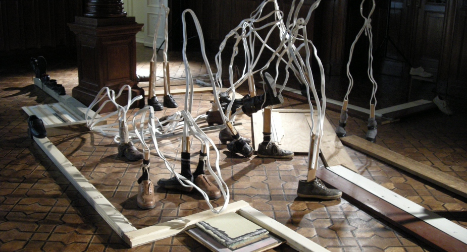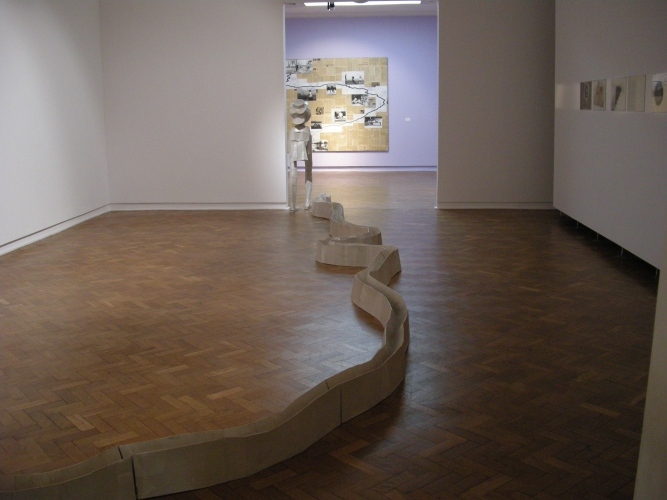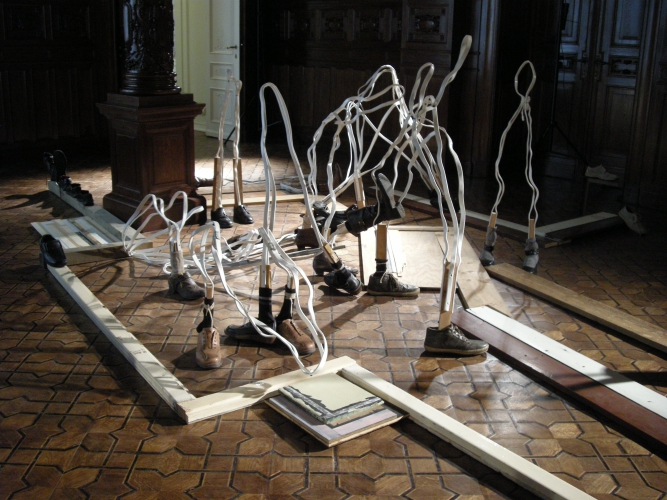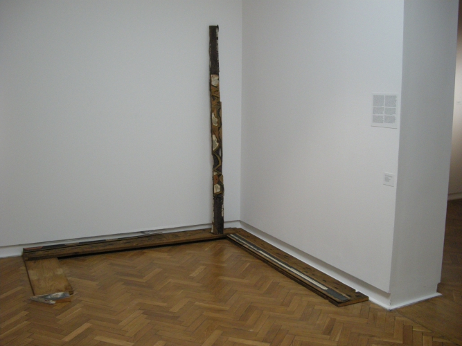 Ruch także jest tutaj przedmiotem analizy. I proces, dzianie się. Z ruchu w czasie powstaje rysunek. Można go przenieść w przestrzeń i oznaczyć nim miejsce. „Miejscami rysunkowymi” zaznaczał Chlanda drogę, jaką pokonywał. Jeden z rysunków w przestrzeni – wykonany z desek – można zobaczyć na wystawie.