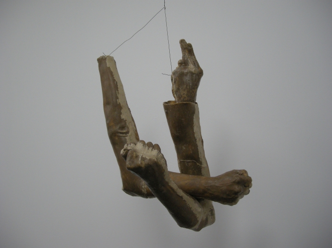 Wielcy twórcy-rewolucjoniści XX wieku to dziś nie tyle aktualne punkty odniesienia dla twórców, ile relikwie sztuki dawnej. Chlanda maluje kości, serce, oko, żyły Cezanne’a i Artauda jak elementy ciał świętych. Ale Malewicz to w jego ujęciu bardziej totem. Jego koła i krzyże uzupełnione przez zmięte kartki znalezionego listu artysta umieszcza w kartonowych pudełkach podpartych drągami – sala lustrzana z tymi obiektami jest sercem wystawy. Czy to sposób na podkreślenie, że cała współczesna sztuka musi w jakiś sposób odwoływać się do Malewiczowskiego minimalizmu, każdy artysta musi mieć tę twórczość w tyle głowy? Przecież czarny kwadrat Malewicza to wyznaczony przez artystę kres możliwości malarstwa.