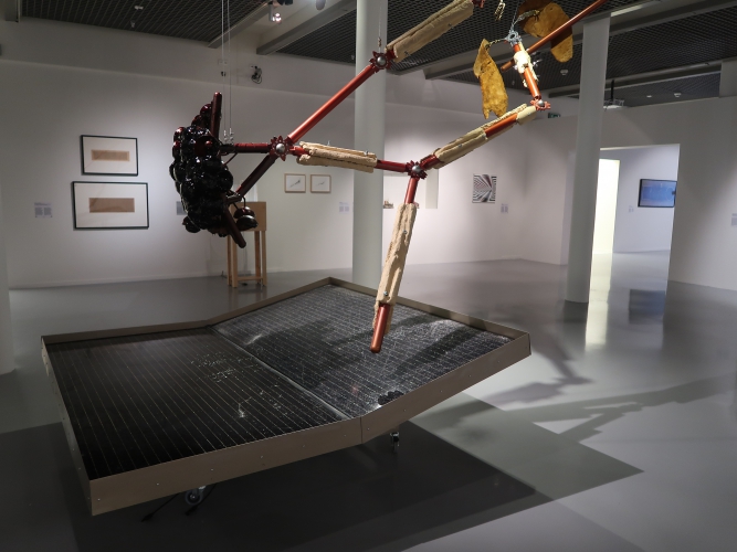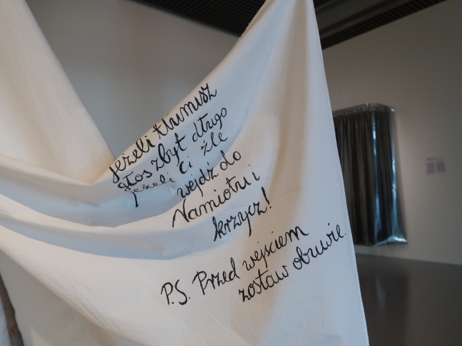 Wystawa, podzielona na 13 działów tematycznych (których nazwy zaczerpnięto z tytułów prezentowanych prac), robi wrażenie dogłębnie przemyślanej i to nie tylko pod względem merytorycznym, ale i przestrzennym. Kuratorzy musieli mieć wiele przyjemności, dobierając dzieła sztuki do konkretnych miejsc w budynku ms2. A teraz przyjemność doświadczania ich w tych, a nie innych miejscach mają widzowie. Można wręcz odnieść wrażenie, że niektóre prace powstały specjalnie z myślą o prezentacji w określonych lokalizacjach – co nie jest prawdą, ale świadczy o przestrzennej wrażliwości osób z zespołu pod wodzą młodego kuratora Jakuba Gawkowskiego. A w pewnych przypadkach także o ich swego rodzaju poczuciu humoru, dzięki któremu tę obszerną wystawę ogląda się łatwiej.Przykład pierwszy: