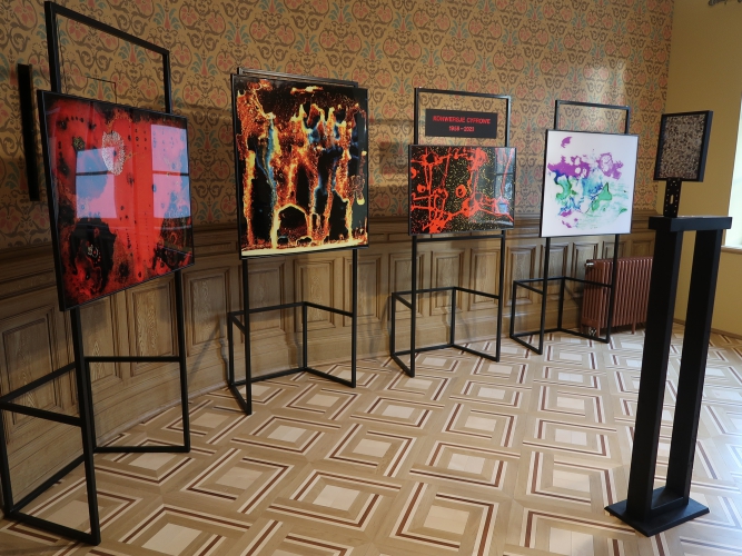 Prace Józefa Robakowskiego z cyklu „Konwersje cyfrowe” są efektem wydobycia – dzięki powiększeniu w programie komputerowym – ekspresyjnych kształtów i kolorów ukrytych w jego malutkich obrazach olejnych malowanych 65 lat temu. Odbitki pełne malowniczych form i soczystych, świetlistych barw to drugie życie dzieł sztuki, które dziś mogłyby wydawać się już nieaktualne.