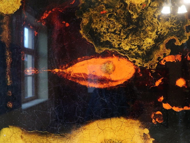 Te niemal pałacowe wnętrza okazały się ciekawie kontrastujące lub też interesująco współbrzmiące z pracami prezentowanymi na wystawie „Obłoki srebrzyste”, która w listopadzie 2023 roku zainaugurowała działalność tego miejsca. Kuratorka Iza Robakowska zaprosiła do niej pięcioro łódzkich artystów: Karolinę Hałatek, Tomasza Matuszaka, Magdę Moskwę, Wojciecha Pusia i Józefa Robakowskiego. Każda z ich prac ma warunki do tego, by dobrze wybrzmieć, nic nie zakłóca odbioru – nawet gdy efektowne wnętrza nieco konkurują z nimi o uwagę.„Dzieła (…) łączy wspólny motyw przemian krajobrazu, rozumianego w wymiarach cielesnym, cyfrowym, politycznym, społecznym, osobistym i duchowym” – czytamy w tekście kuratorskim. „Dzisiaj, w dobie globalnych kryzysów ekologicznych, humanitarnych i tożsamościowych, kiedy upadają mitologie rozwoju i postępu, sztuka odgrywa niezwykle istotną rolę, poszukując nowych sposobów bycia razem w czasach zmiany”.