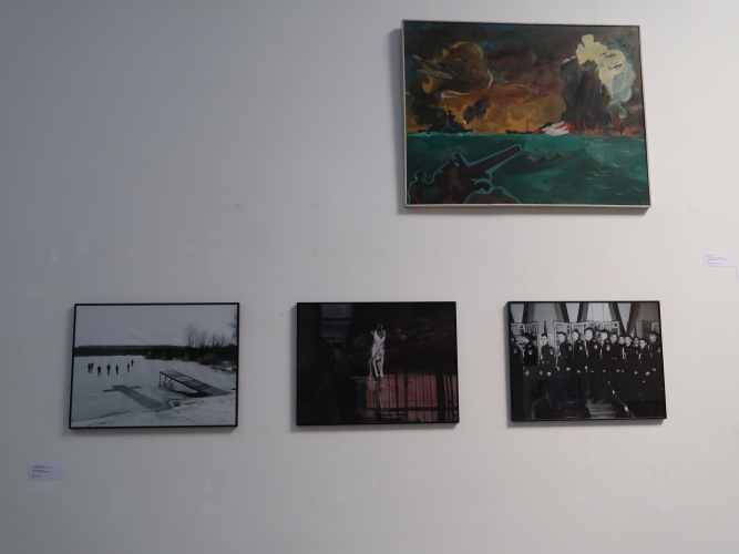 „Szturmowce w boju o Kołobrzeg II” Kazimierza Kędzi z 1983 roku to chyba najbardziej dosłowne na tej wystawie przedstawienie wojny – morskiej bitwy. Z kolei jednymi z najbardziej metaforycznych prac są abstrakcyjne obrazy Tomasza Musiała: „Bitwa 2” z 2023 roku i „Bitwa Warszawska” z 2021 roku. Artysta, uderzając w płótno umaczanym w farbie biczem, odtwarza napięcia kierunkowe ze znanych obrazów przedstawiających bitwy. Napięcia, gdy osiągną moment krytyczny, wywołują wojny.