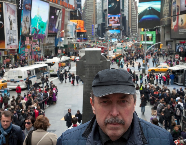 Czesław Czapliński na Times Square w Nowym Jorku, fot. Adam Czapliński