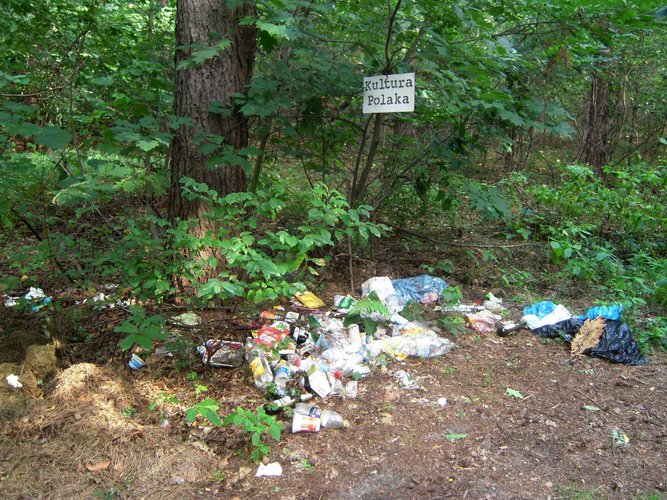 Polaka” umieszczanymi przy napotkanych tam leśnych śmieciowiskach.