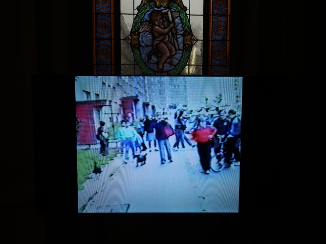 Na początek – jeszcze na klatce schodowej – dwa nakręcone kamerą „z ręki” na łódzkich ulicach wyblakłe, dalekie od doskonałości filmy Marcina Pryta z 1991 roku, które są klamrą całej tej prezentacji. Gdy wchodząc na wystawę, oglądamy je po raz pierwszy, sentymentalnie przenosimy się w przeszłość. Trębacz pod wielkim blokiem wykonuje dla zarobku religijne utwory, a towarzyszy mu, niczym prorokowi, wciąż rosnąca grupa dzieci i dorosłych gapiów i wręcza mu dary w postaci pieniędzy. Drugie dno tej opowieści to „maluchy”, duże fiaty, zgrzebne ubrania… Podobnie w drugim filmie (tu dochodzą odrapane kamienice centrum miasta, ale i przemykające ulicą elegantki), którego bohaterką jest Teresa – tak wynika przynajmniej z tytułu filmu, bo po wyglądzie trudno rozpoznać płeć. Zmarnowana, stara twarz kontrastuje z młodszą sylwetką i całkiem żwawym krokiem. Wykonująca bezwiednie od czasu do czasu pewne gesty Teresa ma do przeniesienia sporo zdobytych w mieście „skarbów” – robi to na raty, aż dochodzi do sklepu spożywczego, w którym sprzedaje znalezione butelki… Oglądane po raz drugi, na trasie wyjścia z wystawy, filmy przestają budzić sentyment, a zaczynają niepokoić – teraz kojarzą się bowiem z dystopijnym światem po apokalipsie. Czy znów taka będzie nasza rzeczywistość?
