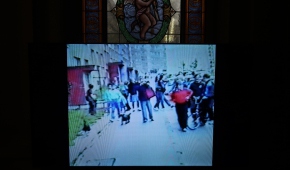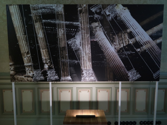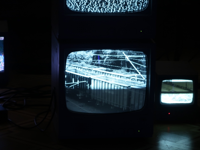 Symbolem upadku kultury i cywilizacji w ogóle, obok zniszczonych kolumn, może być też wieża strażnicza – jedna z wielu współtworzących dosłownie rozumianą żelazną kurtynę, mur, z którym zderzenie oznacza śmierć. Na projekcji widzimy na zmianę wieżę pod różnymi kątami i wiszące na drutach kolczastych zwłoki zastrzelonego uciekiniera z krainy socjalistycznego „dobrobytu”. W pomieszczeniu obok – „jazgot” migoczących świateł i monitorów, a na niektórych filmy z bocznicą kolejową, wagonami towarowymi. Atmosfera zagrożenia, alarmu, strachu – nie do końca wiadomo przed czym. Wagony towarowe historycznie źle się kojarzą. Wywózka na katorgę, na śmierć.