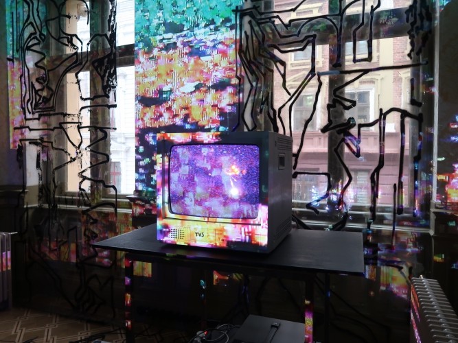 Wystawa trwa w Kamienicy Hilarego Majewskiego, a jej spiritus movens to Wiktor Skok, muzyk sceny hardcore punk, artysta wizualny, kurator niezależnych projektów. Do udziału w najnowszym wydarzeniu zaprosił duet Distort Visual (Ola i Przemek Hoffer), Sect7, Marcina Pryta oraz współtworzone przez siebie: grupę Jude i duet Txt Eye, a pracy kuratorskiej podjęła się Magda Milewska. „Pozor!” po czesku znaczy „uwaga!” – co sugeruje, z czym będziemy tu mieli do czynienia.Gdyby to była duża ekspozycja, trudno byłoby znieść tę kakofonię bodźców wizualnych i dźwięków, gęstość atmosfery zagrożenia. Jednak organizatorzy, zdając sobie z tego sprawę, postawili na zwięzłość, a prace: instalacje, filmy, wydruki umiejscowili w taki sposób, że nie konkurują ze sobą i nie męczą. Przy czym każda propozycja przyciąga uwagę, wręcz narzuca się widzowi wyrazistą formą: światłem, hałasem, kształtami. Nic nie pozostaje niezauważone. Nie ma tu miejsca na dyskrecję, subtelność i półśrodki – to sztuka „uliczna”, industrialna, która musi się przebić przez chaotyczną rzeczywistość codzienności.