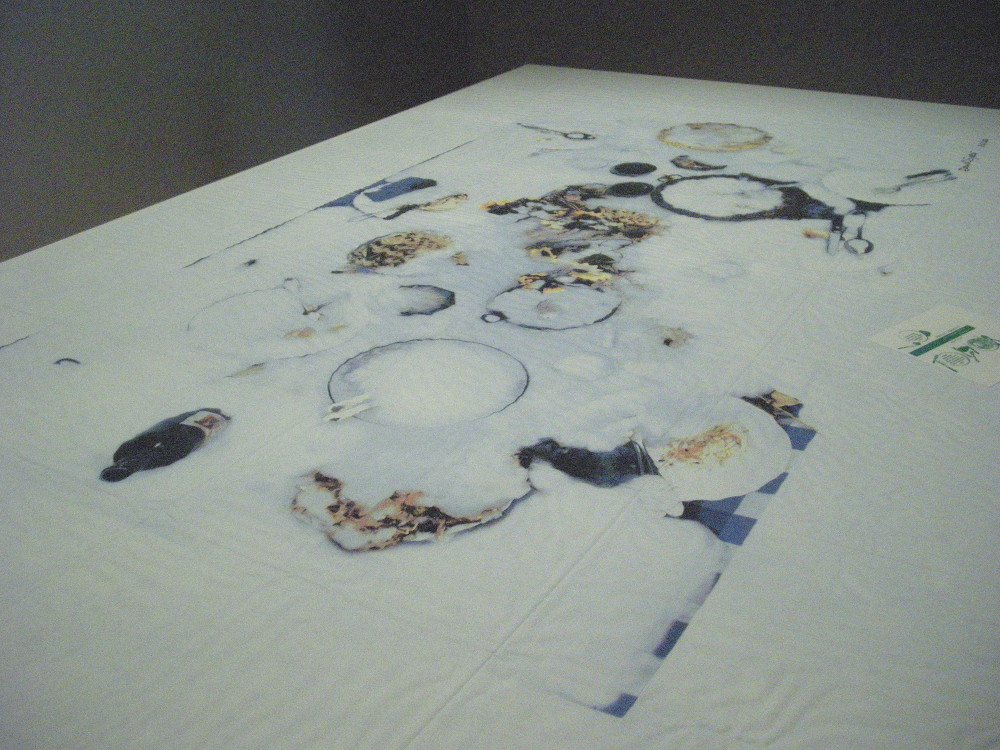 płachtami tkaniny. Na wystawie znalazł się m.in. film dokumentujący