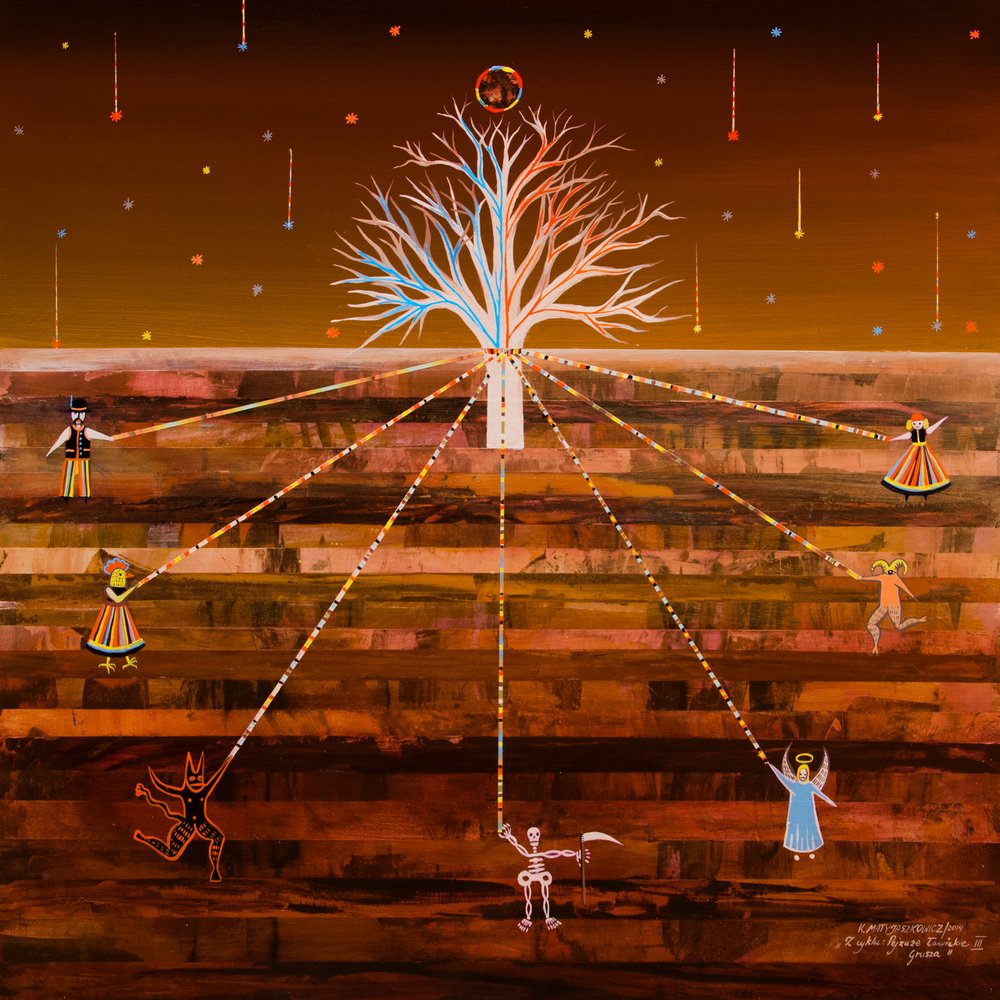 np. Oberek II z cyklu Pasiaki łowickie - widziana