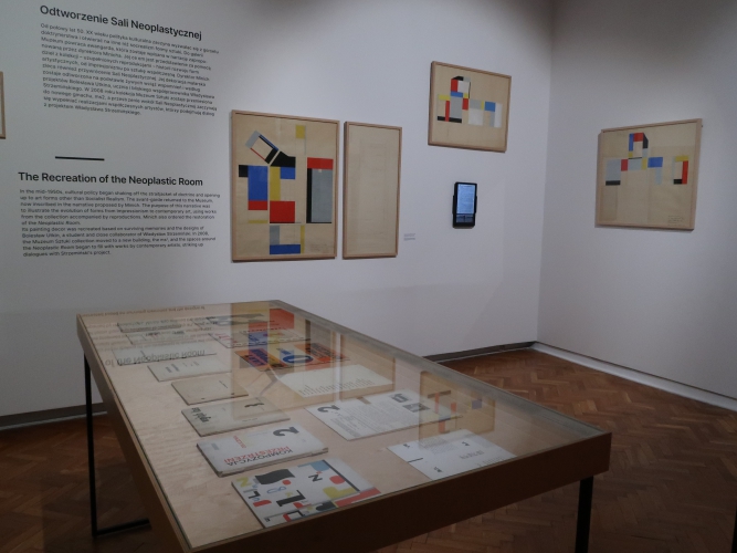 Innym przykładem całościowego traktowania dzieł sztuki i przestrzeni wystawienniczej jest wspomniana Sala Neoplastyczna, którą możemy cieszyć się w Łodzi na co dzień, a którą odsłonięto pierwotnie w 1948 roku. Umieszczono w niej niektóre spośród dzieł zebranych przez grupę a.r. (Strzemiński, Kobro oraz Henryk Stażewski, Julian Przyboś i Jan Brzękowski), dary artystów tworzące Międzynarodową Kolekcję Sztuki Nowoczesnej, która stała się zaczynem upragnionego przez awangardystów muzeum sztuki nowoczesnej. Sala jest zastosowaniem w praktyce teorii dotyczących racjonalnej organizacji aktywności człowieka w przestrzeni. „Odpowiednie podziały geometryczne i zestawienia barwnych płaszczyzn mają rytmizować ruch ludzkiego ciała i pozytywnie wpływać na emocje zwiedzających. Architektura Sali organizuje spojrzenia widza, a w połączeniu z eksponowanymi w jej wnętrzu abstrakcyjnymi obrazami i rzeźbami służy pobudzaniu i rozwijaniu jego wizualnej wyobraźni” – czytamy w opisie tego elementu wystawy. Czy dziś Sala Neoplastyczna działa na widzów tak jak 73 lata temu?