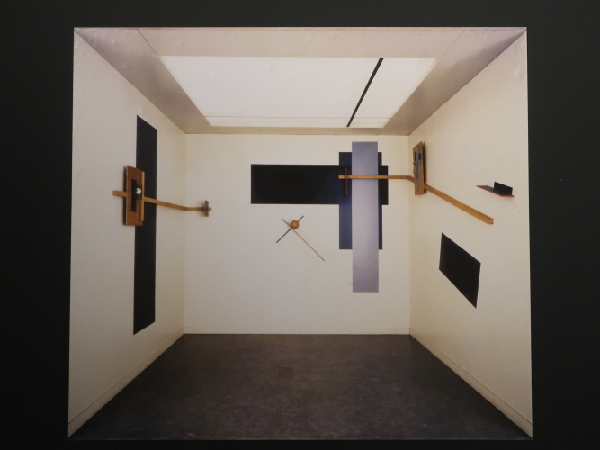 Jeszcze dalej poszedł El Lissitzky, rosyjski konstruktywista pozostający pod wpływem suprematyzmu, twórca tzw. prounów – geometrycznych figur skomponowanych na obrazie w taki sposób, że sprawiały wrażenie przestrzenności, a nawet sugerowały istnienie więcej niż trzech wymiarów. Na wystawie jest zdjęcie jego zrekonstruowanej Sali Prounów (powstałej na Wielką Berlińską Wystawę Sztuki w 1923 roku), która była realizacją tego myślenia w środowisku trójwymiarowym i której zwiedzanie musiało być niesamowitym przeżyciem, wynikającym ze złudzeń optycznych. Ale cztery lata później artysta stworzył coś jeszcze bardziej niezwykłego. Kolejną „przestrzenią wyobrażoną”, jak je nazywał, był Kabinett der Abstrakten w Provinzialmuseum w Hanowerze (powstał na zamówienie jego dyrektora Alexandra Dornera, podobnie jak późniejsza Sala Neoplastyczna powstała na prośbę dyrektora Muzeum Sztuki Mariana Minicha – co pokazuje, że nie tylko artyści chcieli zrewolucjonizować wystawiennictwo). Gabinet Abstrakcji zrekonstruowano na wystawie w Muzeum Sztuki i jest on jej perłą. Kto nie ma ochoty przebijać się przez całą ekspozycję, niech zobaczy chociaż ten jeden pokój – bo to przestrzeń wystawiennicza niepodobna do żadnej innej, sama będąca dziełem sztuki.