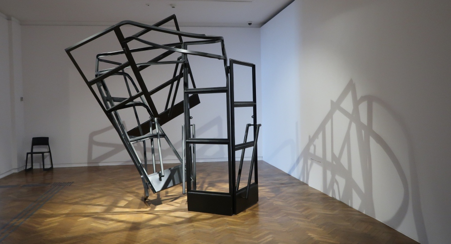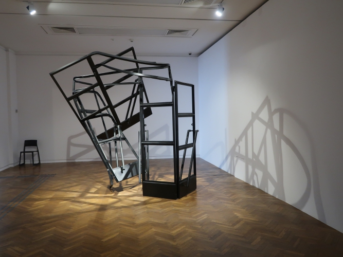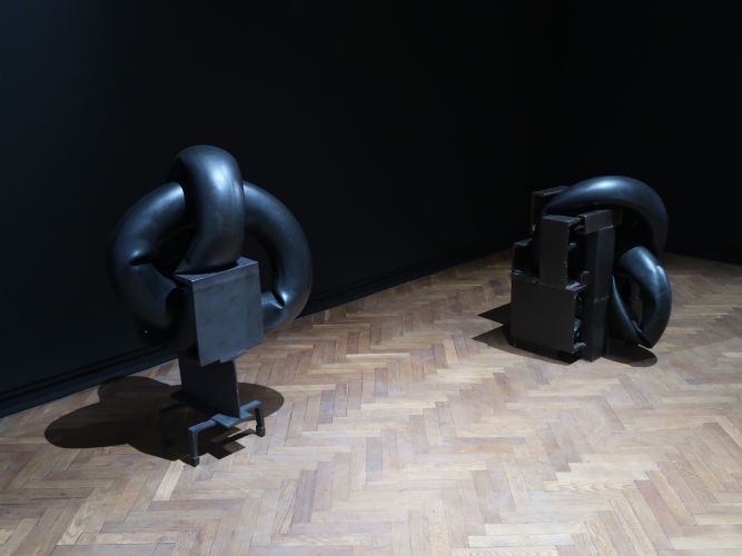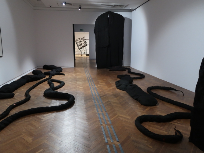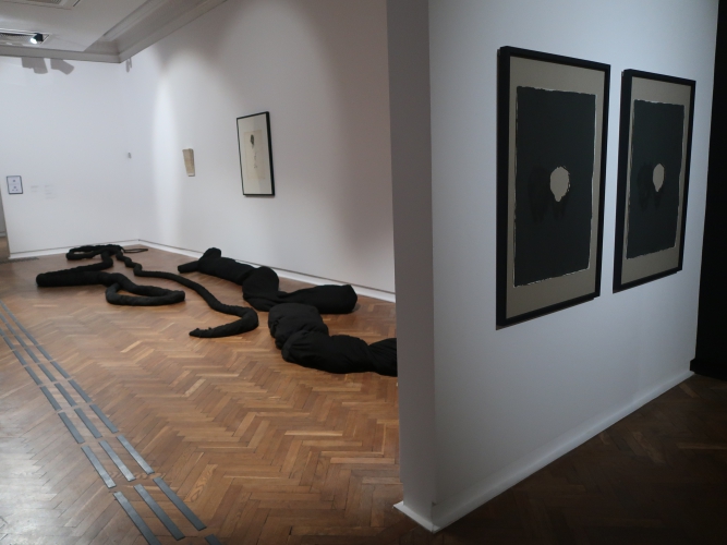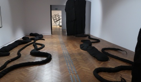 Wszechogarniające poczucie zagrożenia, strach i niepewność – o tym może mówić instalacja Magdaleny Abakanowicz. Jej „Zespół Czarnych Form Organicznych” z 1974 roku to zajmujące całe pomieszczenie płócienne węże i przeskalowane, ogromne „korpusy”. Korespondują z nimi umieszczone w sali obok dwie prace Josepha Beuysa z cyklu „Painting Version 1–90” (1976) – otwory wyrwane w pomalowanych na czarno płaszczyznach. W kontekście tej wystawy stają się śladami po pociskach. Poprzemysłowa konstrukcja zdeformowana przez Monikę Sosnowską („Wejście – Ursus”, 2012) jest jak zły sen, w którym nie możemy odnaleźć własnego domu. Stoimy zaniepokojeni i bezsilni – mamy przed sobą wejście, ale nie możemy z niego skorzystać. Dodatkowo – nie ma nic poza nim. Pustka.