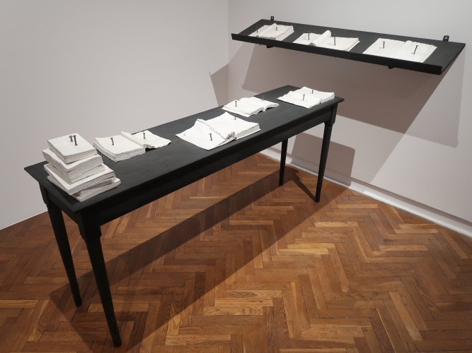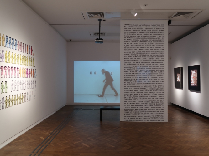 Nie wiem tylko, czy film Igora Krenza „Rzeczy” z lat 2003–2007 słusznie został pokazany na początku wystawy, tuż obok diagramu z zespołem Muzeum Sztuki. Takie umiejscowienie wpływa na odczytanie całości ekspozycji, a sugeruje… brak skuteczności. Na sfilmowanej ścianie wiszą małe obrazki, które wciąż spadają. Artysta je podnosi i ponownie wiesza, a one znów spadają. Niekończąca się, syzyfowa praca bez sensu i spełnienia. Czyli zaprzeczenie funkcjonowania muzealnego zespołu, a zarazem idei wystawy, która właśnie ma podkreślić sprawczość owej ludzkiej maszyny. Opis przy pracy Krenza sugeruje, że to ilustracja dbania o porządek w muzeum, ale być może można ją czytać także jako metaforę niekończącego się trudu opanowywania materii wystaw, albo jako mrugnięcie do widza: tak nie działamy.