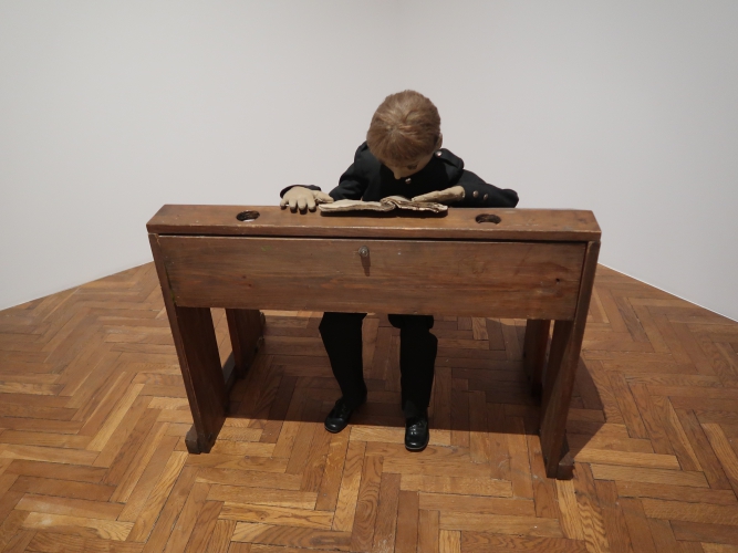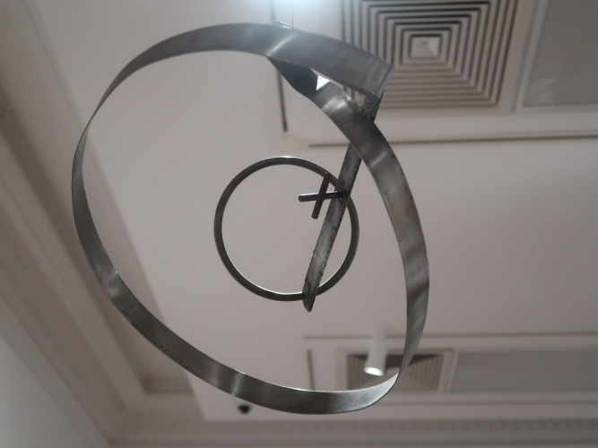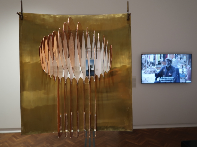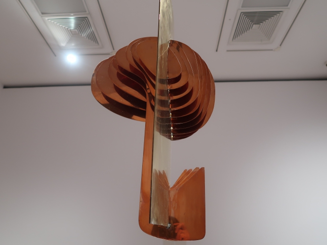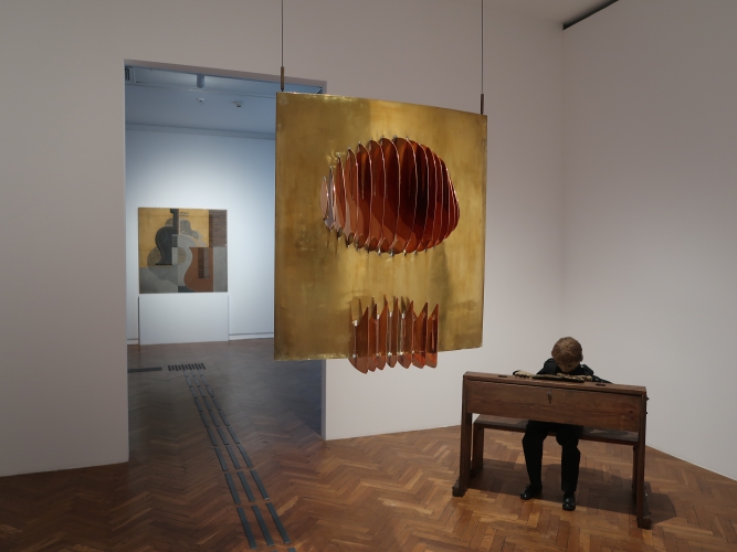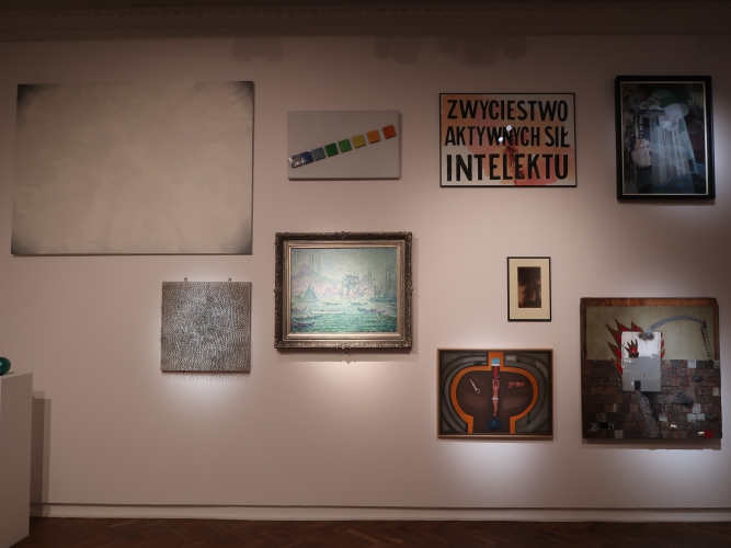 Wyszedł z tego fascynujący misz-masz, w którym sąsiadują ze sobą dzieła, które nie miałyby prawa sąsiadować na żadnej innej ekspozycji. Obrazy, rzeźby, obiekty, reliefy, filmy, wideoperformans. Z różnych czasów, w różnych stylach, technikach, wynikające z innego myślenia, po prostu – z innych światów. I częściowo pokazane są tak, jak po raz pierwszy, jeszcze w budynku ratusza przy placu Wolności, pokazano fundamentalną dla Muzeum Sztuki w Łodzi kolekcję grupy a.r. – dzieła gęsto rozwieszone na ścianie jedno obok drugiego i jedno nad drugim. I tak praca Karola Hillera spotyka się z obrazami Jacka Malczewskiego czy Wacława Kondka, Jerzy Nowosielski – z Paulem Signakiem, Jadwiga Sawicka – z Henrykiem Stażewskim i Aleksandrą Ska. A relief Teresy Tyszkiewicz zestawiono z rzeźbami Tadeusza Kantora i Mirosława Bałki, filmem Antje Majewskiego oraz z fascynującą miedzianą rzeźbą Krystiana Jarnuszkiewicza z 1968 r., która stała się dla mnie odkryciem – nie znałam jej bowiem wcześniej. To lekki, ażurowy obiekt geometryczny, który z różnych perspektyw prezentuje się całkowicie inaczej (dziękuję za jego wskazanie Juliannie Goździk z Działu Sztuki Nowoczesnej, która w Muzeum Sztuki pracuje od 11 lat, a trafiła tu przypadkiem). Gdy stanie się w odpowiednim miejscu w Sali Neoplastycznej, w geometryczne kompozycje wpasowuje się Cezary Bodzianowski, bezskutecznie usiłujący w swoim wideoperformansie stanąć na obute w rolki nogi w obracającym się kręgu. Uroczy komentarz do pełnego powagi dzieła Władysława Strzemińskiego i innych prac z kręgu awangardy.