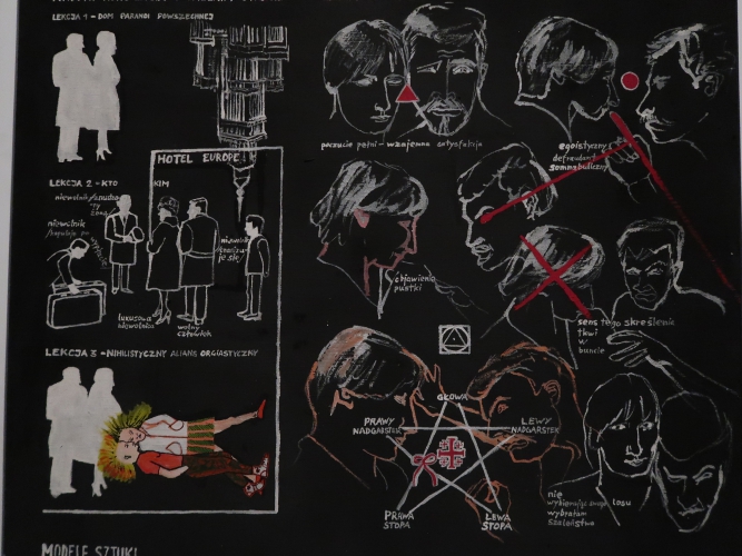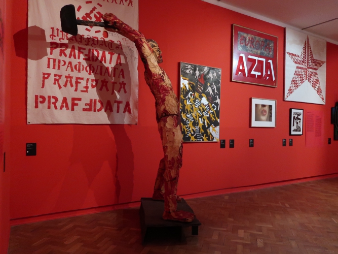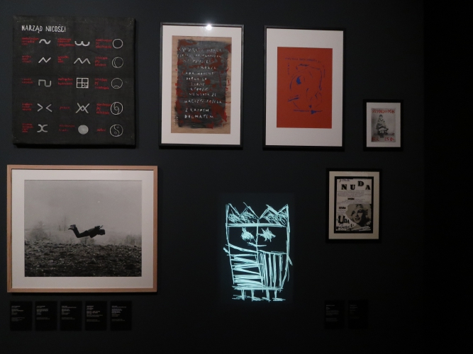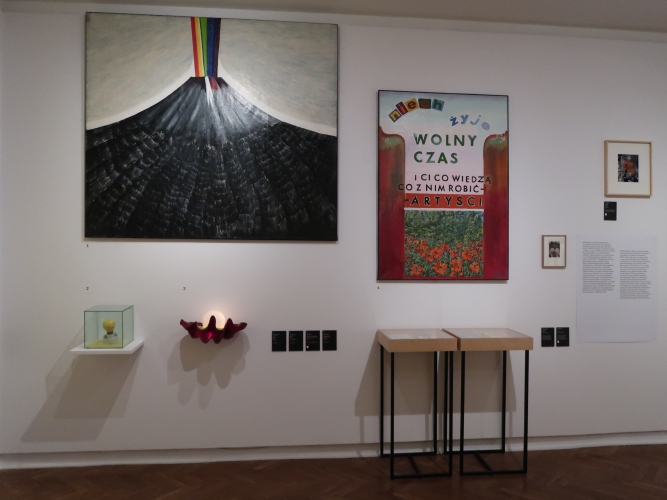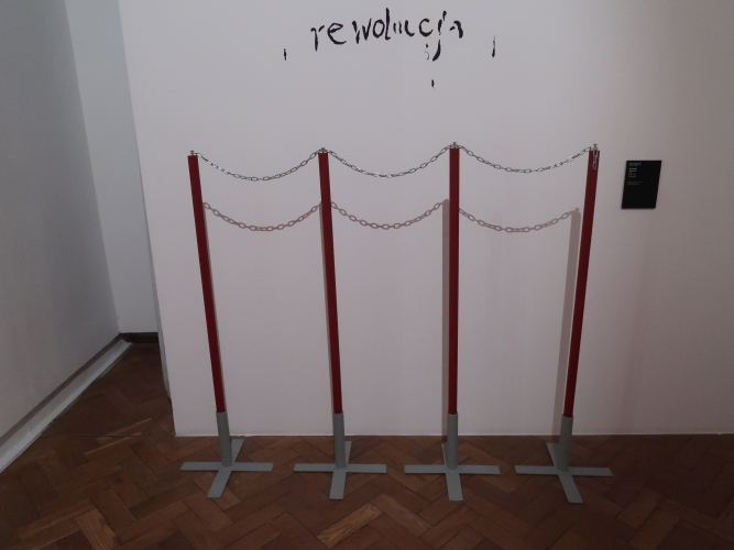 Choć obraz przemian ustrojowych i społecznych zapoczątkowanych w 1989 roku widziany oczami artystów jest bardzo interesujący, to jednak siłą rzeczy jednowymiarowy. Twórcy zwykle biorą na warsztat coś, co ich boli, zajmują się krytyką negatywnych elementów rzeczywistości, a nie pochwałą pozytywnych, poza tym reagują na konkretne sytuacje, tu i teraz, nie obejmując całokształtu zjawisk. A jeszcze na ostatni akt ekspozycji wybrano artystyczny obraz społecznej klęski, który widz wynosi ze sobą jako powidok*. Wszystko to sprawia, że wystawę w ms1 opuszcza się z zakodowanym obrazem katastrofy, jakby to, co się dokonało, przyniosło tylko fatalne rezultaty, jakbyśmy nie zyskali wolności i możliwości wpływania na rzeczywistość. Choć cały dział poświęcono optymizmowi roku 1989, to jednak pokazywane w nim prace nie robią wrażenia optymistycznych. Tego rodzaju prezentacji oczywiście nie można traktować jak lekcji historii czy wiedzy o społeczeństwie. Ale – mimo że prawie brak tu nadziei – jako uzupełnienie takich lekcji „Ruchy tektoniczne” wypadają nieźle.To duża, rozbudowana wystawa, podzielona na działy tematyczne w ramach dwóch obszarów: dotyczących przemian politycznych, ideologicznych i gospodarczych oraz duchowości. Pełna jest artefaktów z niemal wszystkich możliwych dziedzin sztuki – od malarstwa i rzeźby, przez zapisy performensów i happeningów, po chałupniczą grafikę wydawniczą: ziny, druki i plakaty oraz twórczość uliczną, choćby szablony i mural. Autorami są pierwszoligowi twórcy tego czasu. Wymienię choćby Pawła Althamera, Rafała Bujnowskiego, Leszka Knaflewskiego, Zbigniewa Liberę, Piotra Uklańskiego, Alicję Żebrowską, Artura Żmijewskiego, Władysława Hasiora, Zbigniewa Warpechowskiego czy znane z ulicznych wystąpień Galerię Działań Maniakalnych i Wspólnotę Leeeżeć. Notabene – bardzo mało tu kobiet-artystek, ale i kobiet-bohaterek prac, co wiele mówi o polskim społeczeństwie tamtych dni, przekonanym, że poważne sprawy to męska rzecz.