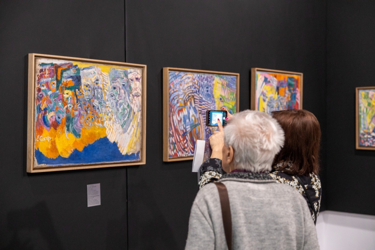 Dzieła prezentowane są w układzie chronologicznym, co pozwala śledzić kolejne etapy życia artystki i obserwować, jakie odbicie znalazły w malarstwie. Możemy zapoznać się np. z wczesną twórczością Karp – scenami malowanymi zapewne w latach 20. XX wieku, gdy malarka mieszkała jeszcze w Skierniewicach, a także z awangardowymi pracami powstałymi już we Francji.