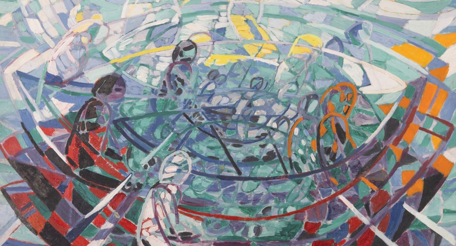 Postaci podporządkowane wirującym rytmom kompozycji przypominają mi niekiedy malarskie poszukiwania Bolesława Biegasa. Artysta stworzył koncepcję tzw. obrazów sferycznych, ukazujących akty i portrety wpisane w dynamiczne, koliste formy. Francuski krytyk sztuki Michel Georges-Michel, poznając te sferyczne kompozycje jeszcze w 1918 roku, napisał: „Najpierw wierzymy, wbrew pięknym relacjom kolorów, że jest to żart: koła i małe zabarwione romby przecinają się wzajemnie. Potem, nagle, jak w zagadkach-obrazkach, odkrywamy temat: postać kobiety w większości przypadków. I figura ta pojawia się niczym z jakiegoś witrażu – ciała półprzezroczyste, usta zaczerwienione. Jest to coś wibrującego, żyjącego, prawie logicznego już po pięciu minutach. (…) Bolesław Biegas wynalazł także sferyzm, a my byliśmy pierwszymi, którzy oznajmili: jest w nim zdecydowanie więcej z futuryzmu niż kubizmu, gdyż artysta szuka tu ekspresji dynamicznej. Wyobraźcie sobie dużą liczbę okręgów, w których każda mała ścięta ćwiartka jest zabarwiona, pomalowana inaczej i współtworzy dekoracyjną całość figury. Rodzi się z tego bogactwo barw, a nawet wyraz, jaki osiągają jedynie witraże, mozaiki lub freski” (Michel Georges-Michel, Spherisme, „Paris-Midi”, 6.06.1918). Zdaje się, że niemal te same słowa krytyk mógłby wypowiedzieć na temat twórczości skierniewickiej artystki.
