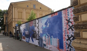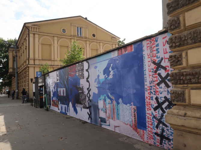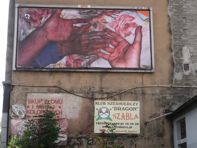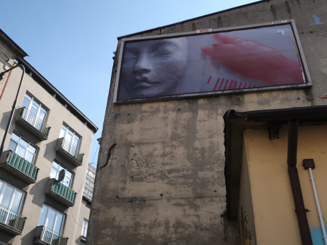 Wyraźnie widać, że obraz w przestrzeni miasta nie istnieje w oderwaniu od innych obrazów. Przestrzeń, którą mamy do dyspozycji, to nie jest tak całkiem „wolne miejsce”. Cokolwiek próbujemy w niej zakomunikować, musimy brać pod uwagę otoczenie. Te spotkania wpływające na odbiór prac i uświadamiające ową „miejską” właściwość to drugi ciekawy aspekt wystawy.