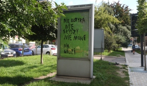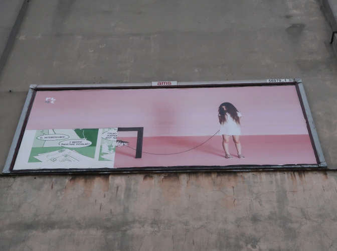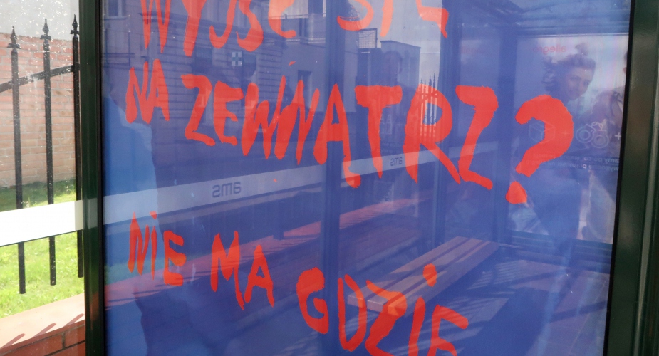Prace 20 autorów są anonimowe. Jak to „na mieście” – tu nie ma gwiazdorstwa, nie ma indywidualności, trzeba się pomieścić pośród mnóstwa innych wizualnych znaków. Katarzyna Kozyra, Elżbieta Jabłońska czy Jadwiga Sawicka (znamienne, że wśród autorów zdecydowanie dominują panie) – gdzie indziej błyszczące osobowością – tutaj zrównują się ze streetartowcami. Chociaż nie, oni posługują się pseudonimami, a na tej wystawie w ogóle nie ma podpisów. Totalna anonimowość, jak w reklamie. Nigdy nie wiemy, kto jest jej autorem – w tym przypadku możemy próbować rozpoznać autorstwo po stylu, ale nic ponadto. To pierwszy ciekawy aspekt tego pokazu.