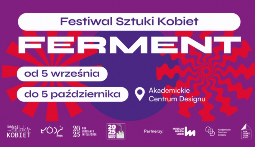 W różnych miejscach Łodzi trwa I Festiwal Sztuki Kobiet "Ferment", organizowany przez Łódzki Szlak Kobiet. Łódź to miasto kobiet, ale także miasto rewolucji, awangardy i sztuki nowoczesnej - festiwal łączy te wątki.