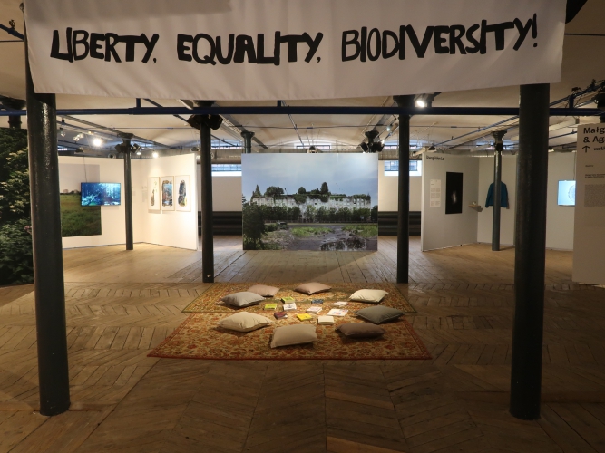 Zacznę od tego, co zadziałało na mnie hipotyzująco – filmików nakręconych sobie samym przez dzikie zwierzęta, które zaciekawiły odnalezione przez nie kamerki. Od czasu do czasu w medialnej przestrzeni pojawiają się zagadnienia, czy zwierzę jest autorem fotografii lub filmu, jeśli nie ma świadomości ich tworzenia – czy może autorem zdjęć jest właściciel porwanego aparatu. W tym przypadku takie rozważania nie mają znaczenia. Widz po prostu, dzięki Mishce Hennerowi, może cieszyć się ujęciami, jakich nie zobaczy w żadnym filmie przyrodniczym – w tym widokiem wnętrz paszcz, przełyku, wnętrzności, środka trąby słonia. Tu zwierzęta korzystają z wolności mimo ludzkiej ingerencji w ich środowisko (kamerki). W innych projektach widzimy zwierzęta zaspokajające różne potrzeby człowieka: żywieniowe, medyczne, wojskowe. Nie mające żadnego wpływu na swój los. Diana Lelonek zaciera w swej twórczości różnicę między tym, co ludzkie i tym, co zwierzęce czy roślinne. Na jej fotografiach nadzy ludzie pojawiają się w stadach jak zwierzęta na obrzeżach miast, na styku przyrody i cywilizacji, a przedmioty porzucone przez człowieka pokryte są mchami i porostami. Kolaż z porośniętym lasem budynkiem ministerstwa środowiska jest wizualizacją zemsty natury za wycinkę drzew w Puszczy Białowieskiej.