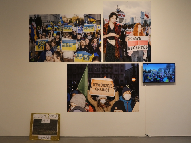 Wystawę „Solidarność, protest, troska” można potraktować jako aneks do pozostałych prezentacji w Art_Inkubatorze – bo fotografie, nawet jeśli się na niej pojawiają, mają drugorzędne znaczenie. To wystawa poświęcona odruchom solidarności wobec migrantów (tych, którzy utknęli na polsko-białoruskiej granicy), antysystemowym protestom, wzajemnemu wsparciu, budowaniu niezbędnych społecznych relacji. Jest też mowa o sprawczości sztuki – Yulia Krivich w 2019 r. w artystycznym happeningu w Warszawie domagała się zastąpienia określenia „na Ukrainie” zwrotem „w Ukrainie”, jako bardziej stosownym w przypadku niezależnego państwa. Wybuch wojny spowodował, że wiele mediów faktycznie zaczęło stosować tę drugą formę. Największą wartością owego „aneksu” jest uzmysłowienie, że w Polsce funkcjonują różne ważne, prospołeczne przedsięwzięcia, inicjatywy, o których zwykle nie wiemy, a które sprawiają, że dobrze myślimy o swoich rodakach.
