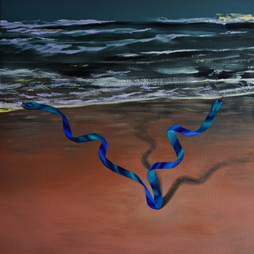 Artysta, bazując na złudzeniach optycznych i grze skojarzeń, bawi się podobieństwami i dwuznacznością materii. Na wystawie można znaleźć m.in. fruwającą na wietrze niebieską wstążkę ukazaną na tle wzburzonego morza, którą autor, myląc widza, sprytnie przemienia w dwugłowego, wijącego się węża.