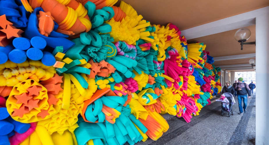 Łódzkie Centrum Wydarzeń odsłoniło ostatnią z planowanych na ten rok instalacji artystycznych, które od dwóch lat regularnie powstają w ścisłym centrum miasta. Tym razem realizacja powstała przy placu Wolności, w podcieniach kamienicy przy ul. Legionów 2. Przestrzenna instalacja została przymocowana do ściany, ma ponad dwadzieścia metrów długości, trzy metry wysokości i wykonana została z różnokolorowej pianki poliuretanowej.Michał Bieżyński, kurator ds. sztuki w przestrzeni miejskiej, Łódzkie Centrum Wydarzeń: - Organizacja realizacji przestrzennych w mieście stanowi o wiele większe wyzwanie niż przykładowo pomalowanie ściany i stworzenie muralu. Jest to dość złożony proces, trzeba brać pod uwagę o wiele więcej aspektów – zarówno na poziomie tworzenia pracy, materiałów do niej wykorzystanych, miejsca, w którym zostanie ona wyeksponowana oraz późniejszego jej funkcjonowania. Marta zgłosiła się do nas z interesującym pomysłem, którego formę oraz charakter trzeba było dopasować do warunków przestrzeni publicznej. Wspólnie wypracowaliśmy odpowiedni koncept i udało się nam znaleźć właściwe miejsce, które na co dzień jest naturalnie uczęszczane przez ludzi, chroni instalację przed niekorzystną pogodą, a także zapewnia automatycznie nocne oświetlenie.