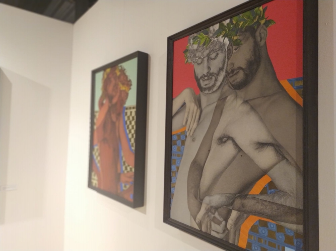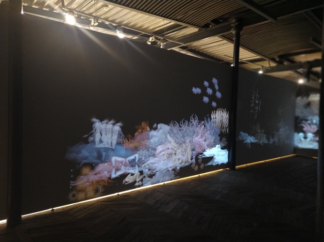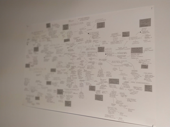 Prace ulokowano w otoczeniu białych ścian, ustawionych w kształt labiryntu. Obserwujemy, jak zmieniał się w czasie sposób widzenia sztuki rysunku, malarstwa, wideo artu, instalacji, digital artu czy sztucznej inteligencji.