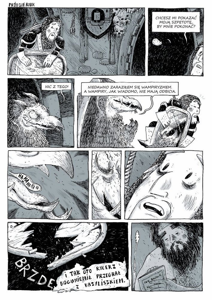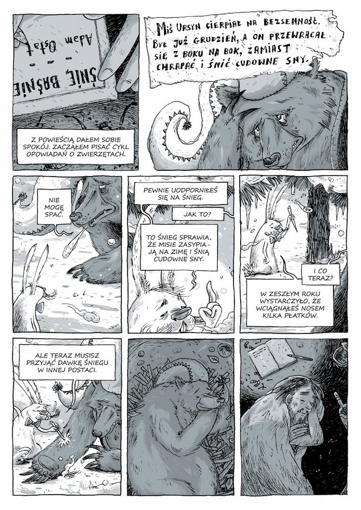 dołożył w tym roku kilka kolejnych.Z rodzinnego podkarpackiego Jarosławia przyciągnęła go do Łodzi chęć studiowania w najsłynniejszej polskiej szkole filmowej. W październiku rozpocznie piąty rok zajęć na wydziale animacji. I choć ma na koncie cztery interesujące, animowane krótkie metraże, największe sukcesy odnosi jako twórca komiksów. Jak mówi – rysuje od zawsze. I tylko raz nad kartkę i ołówek przedłożył coś innego – piłkę do koszykówki. Przez kilka lat trenował w Zniczu Jarosław, ale gdy przyszło wybrać szkołę średnią, postawił na plastykę i koszykówka poszła w odstawkę.