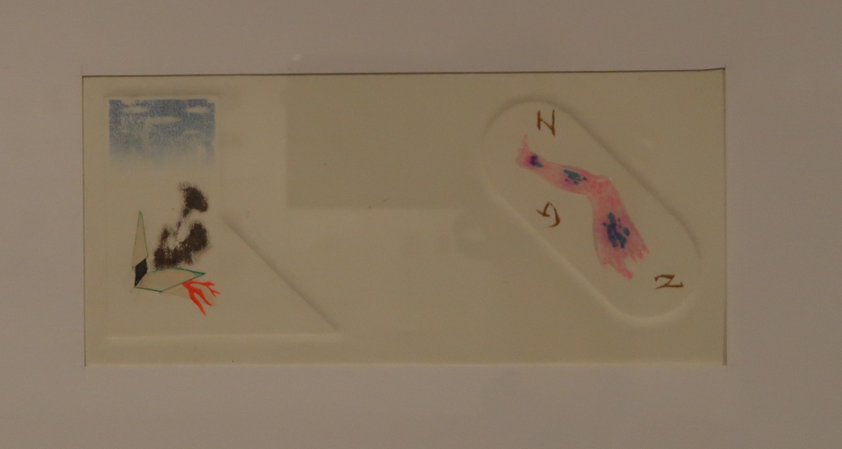 Nietypowe rozwiązania zaproponowało tylko dwoje twórców. Maria del Carmen Mendoza Chavez z Meksyku rozszerza rozumienie grafiki warsztatowej, nadrukowując ją na tkaninie, a następnie przyszywając wyrazistym ściegiem do papieru i haftując. Z kolei Marcin Piotr Surzycki pokazuje coś, co trudno nazwać grafikami – ale skoro jury dopuściło je do konkursu, to widocznie nimi są. To małe obiekty – abstrakcyjne, ciemne przestrzenne formy naklejone na papier.
