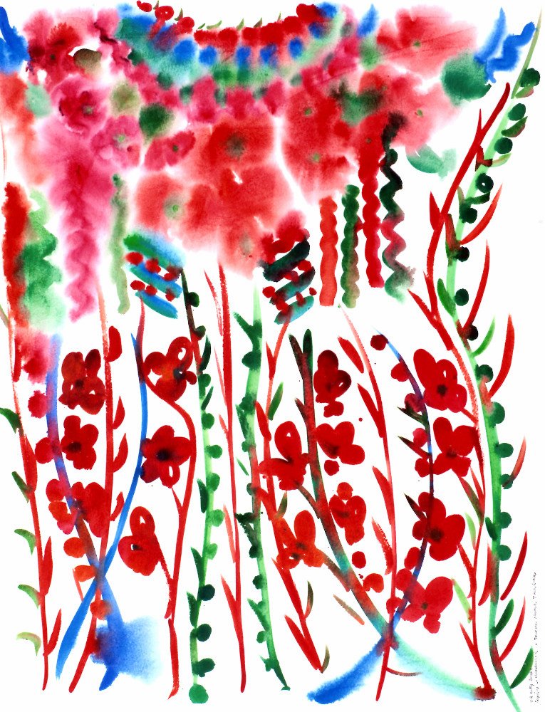 Wrażenia odniesione w różnych krajach odzwierciedla forma obrazów. Tam, gdzie artystka odczuwała przestrzeń, „oddech”, pojawia się białe tło, a na nim kolory. Tam, gdzie atmosfera była zagęszczona, pełna bodźców, tła nie ma – barwne plamy całkowicie wypełniają powierzchnię. I tak np. obrazy z Belize (kropki i smugi na białym tle) różnią się zasadniczo od akwarel z Nowego Jorku, który onieśmielił autorkę (jak można przeczytać w opisie tego cyklu) wysokimi budynkami zasłaniającymi niebo, gęstością, nasyceniem, pogonią za bogactwem – na pracach wszystkiego jest dużo, pojawiają się nawet napisy, nie ma miejsca na oddech.