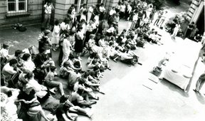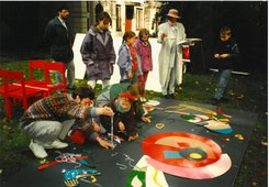 Ale to tylko jedna części ekspozycji. W drugiej znalazła się dokumentacja akcji artystycznych przeprowadzanych przez tę artystkę w latach 1975-97 w łódzkich przestrzeniach (we współpracy z muzeami i galeriami) – w tym na dziedzińcu Muzeum Sztuki czy w ogrodzie Muzeum Historii Miasta Łodzi. Akcje wywodziły się z happeningu, ale zawierały też elementy teatralne. Trelińska angażowała w nie młodzież (uczyła plastyki w łódzkich liceach) i dzieci, rzadziej dorosłych – choć poruszano bardzo trudne zagadnienia. Akcje nawiązywały np. do tekstów Platona, Władysława Tatarkiewicza czy Witolda Gombrowicza, do twórczości Władysława Strzemińskiego czy Wasyla Kandinsky’ego, odbyło się też spotkanie z Tadeuszem Kantorem, które przerodziło się w teatr jednego aktora. Z opisów akcji, umieszczonych na planszach wraz z archiwalnymi zdjęciami wynika, że zwykle były bardzo skomplikowane – trudno powiedzieć, na ile młodzi ludzie biorący w nich udział zrozumieli przekaz. Niektóre – te prostsze – miały z pewnością duży walor edukacyjny (przypominały współczesne działania edukacyjne, choćby Muzeum Sztuki właśnie): jak odwzorowywanie unistycznego obrazu Strzemińskiego przy pomocy tekturowych kółek czy abstrakcyjnego obrazu Kandinsky’ego przy pomocy powycinanych geometrycznych form (film nagrany podczas tej ostatniej akcji można oglądać na wystawie).