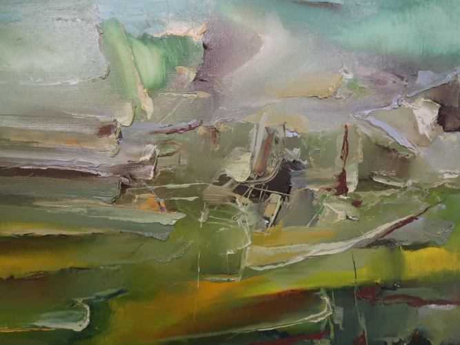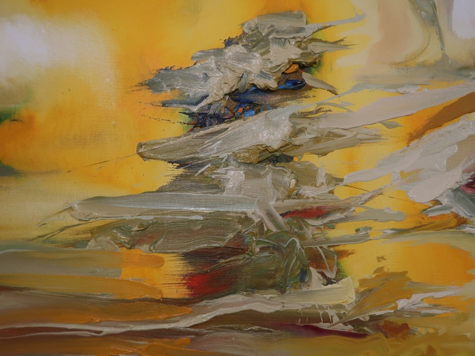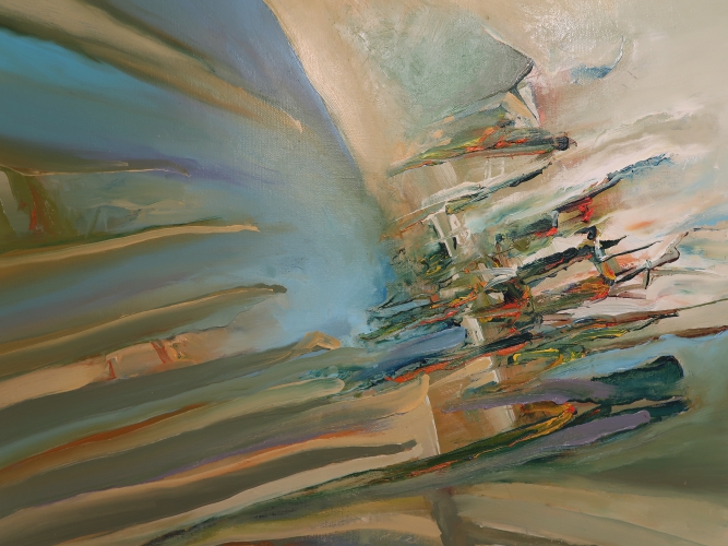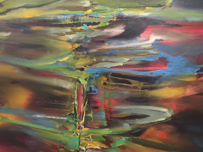 Dynamika tego malarstwa wynika z energicznych pociągnięć pędzla albo szpachelki, z mięsistych impastów i z kolorystycznych zestawień. Ze świetlnych blików i poszarpanych abstrakcyjnych form, powstałych jakby w efekcie zderzenia smug farby. Ale nie ma w tym nic z przypadku – to nie action painting, tylko w pełni świadome kształtowanie rzeczywistości obrazu, wspomniane opanowanie materii. Same kolory na jednych obrazach są soczyste, mocne, zdecydowane i śmiałe, podczas gdy na innych – delikatne i przytłumione, co jednak nie wpływa na zmniejszenie ich dynamiki. Pewne obrazy z ostatnich kilku lat (2021–24) są czysto abstrakcyjne, w innych zza abstrakcyjnej kurtyny przenika jakiś zarys materialnej realności: a to nieokreślona postać ustawiona pod ostre, białe światło, a to fragment budynku czy wnętrza.