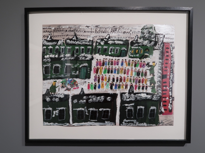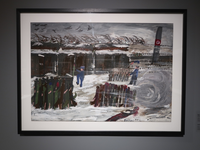 Ciekawe, że czasami dla oddania obozowych przeżyć stosowała metalizowane farby, nawet złotą – jakby chciała ten świat upiększyć, dodać mu blasku, nadać sens. Malarskimi środkami umiała oddać nie tylko grozę sytuacji, ale i przenikliwe zimno (jak w „Bez tytułu. Smutna ziemia” z 1998 r.).