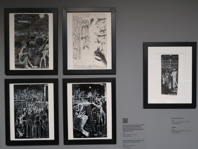 Czasem uwidaczniała detale, innym razem pomijała je, sprawiając, że praca stawała się nieomal abstrakcyjna. A tworzyła też całkowicie abstrakcyjnie. Na wystawie są rysunki składające się z czarnych plam na białym tle – opisują nędzę, cierpienie, śmierć, drogę do krematorium… Czasem realizm zawodzi. A o tym, jak wyglądały obozowe realia, niech zaświadczy wspomnienie Cejii Stojki z wyzwolenia Bergen-Belsen: alianccy żołnierze byli tak wstrząśnięci, że więźniarki musiały ich pocieszać…
