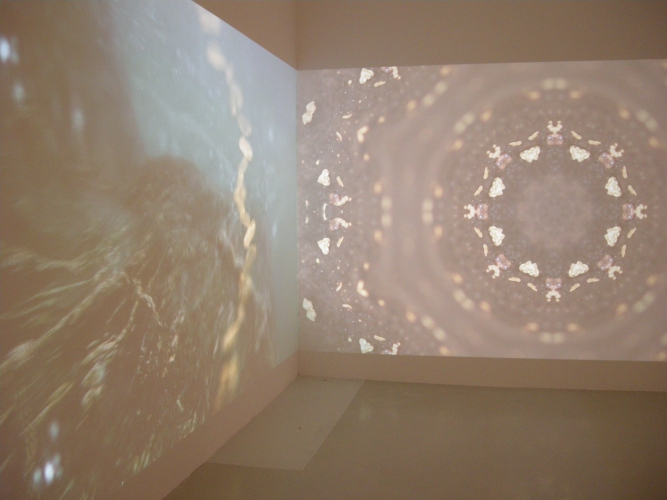 Jest jeszcze jedna salka, która pozwala przenieść się do świata alternatywnego. Na trzech ścianach wyświetlany jest trzykanałowy filmik, w którym ciężka praca ludzi (kobiet?) wyłuskujących z piasku drobinki złota została przetworzona na poetycki, zwiewny obrazek ubrany w formę kalejdoskopowych mandali w kolorze złota.