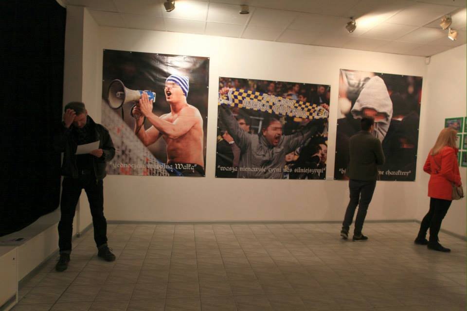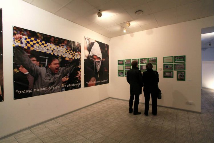 ich powiązania z organizacjami rasistowskimi.Na wystawie zaprezentowany został cykl fotograficzny "Konstrukcja rasy - Volksgemeinschaft". Na wielkoformatowych zdjęciach przedstawione zostały grupy pseudokibiców. Fotografie opatrzone zostały hasłami o faszystowskim zabarwieniu: „Twój honor, Twoja rasa”, „Biali ludzie, czarne charaktery”, lub „Wasza nienawiść, czyni nas silniejszymi”.