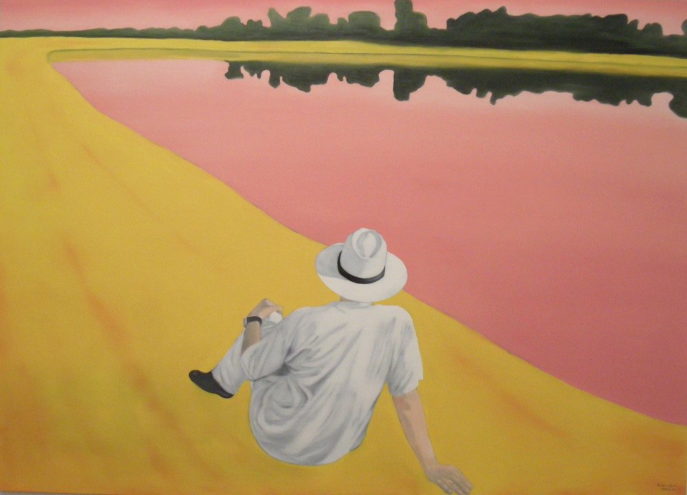 Żółto-różowy pejzaż wygląda nierealnie, z jednej strony radośnie, z drugiej – niepokojąco. Człowiek, który siedzi na brzegu jeziora, robi zdjęcia, albo spaceruje, jest w tym otoczeniu wyobcowany. W ogóle ludzkie postaci często są na obrazach węgierskiego artysty wyseparowane, jakby wycięte z innej rzeczywistości i doklejone do tła. Niektóre są wręcz bezcielesne – malowane szkicowo białą kreską, „od niechcenia”. Jego spojrzenie jest spojrzeniem fotografa - kadry bywają typowo fotograficzne (jak np. obraz z siedzącym na krześle mężczyzną pokazanym z nietypowej perspektywy).